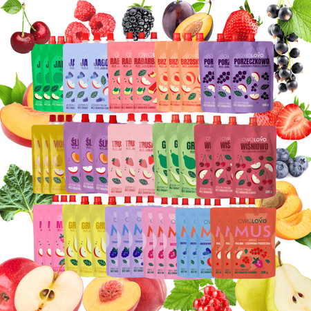 jabłko, truskawka, malina, jagoda, wiśnia, gruszka, porzeczka, morela, śliwka, brzoskwinia, rabarbar, gruszka, jeżyna